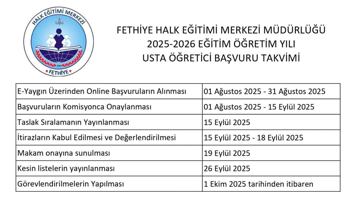 2025-2026 Usta Öğretici Başvuru Takvimi